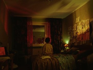 Wir haben zehn Tage lang ununterbrochen gedreht und dann später im Juli die Traumsequenz gedreht. Bei der Suche nach Drehorten fanden wir einen Ort, der uns völlige Freiheit gab, sodass wir das gesamte Set umbauen konnten. Ich bin meiner Art Designerin Emma Tilk unglaublich dankbar für ihre Geduld mit zwei Menschen wie mir und Fidelia [Kamerafrau], die beide buchstäblich besessen von Details sind. Ich habe mir sogar Material aus Italien schicken lassen, weil ich in Estland nicht genau das finden konnte, was ich wollte. Wir wollten etwas visuell Auffälliges und sehr Kontrastreiches haben. Sowohl Fidelia als auch ich lieben das asiatische Kino und wir haben uns viele Filme aus Japan, Korea und vor allem Hongkong angesehen, um uns von ihren visuellen Strukturen und der kontrastreichen Beleuchtung inspirieren zu lassen. Für die Traumsequenz wollte ich etwas ganz anderes, und Fidelia schlug vor, ein bestimmtes Objektiv zu verwenden, das sie modifiziert hatte. Es hat sehr viel Spaß gemacht, zu experimentieren. Aber alles, was man im Raum sieht, wurde sorgfältig ausgearbeitet – von den Wänden über die Teppiche bis hin zu einigen Möbeln; wir haben sogar die Gitterstäbe am Fenster entfernt. Es gab noch ein paar andere Dinge, die wir getan haben, um den Look und das Gefühl zu erreichen, das wir für die Aufnahmen wollten, aber ich werde sie nicht verraten – ich möchte nicht zu viel verraten.
